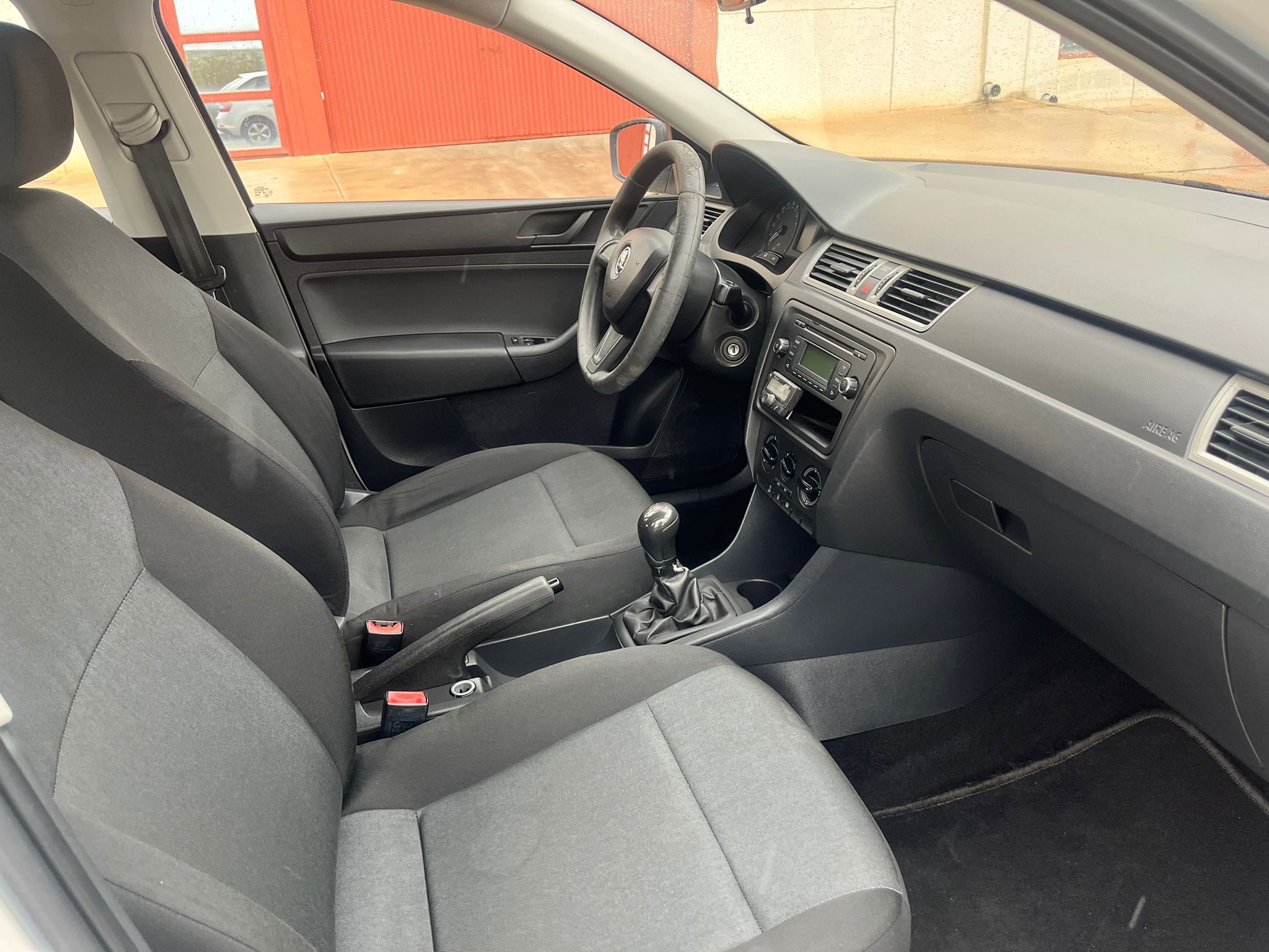 Skoda Rapid 1.6 TDI CR 90CV Ambition del año 2015, en color blanco y en muy buen estado tanto estético como mecánico. Equipado con dirección asistida, llantas de aleación, aire acondicionado, radio CD, ordenador de a bordo y elevalunas eléctricos. ITV recién pasada y mantenimiento con cambio de aceite y filtros al día. El vehículo se encuentra en Alhama de Murcia. Incluye transferencia y 1 año de garantía en el precio anunciado.